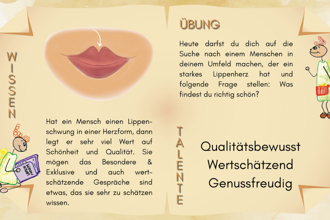 30 Lern & Übungskarten mit unterschiedlichen Merkmalen (verschiedenste Formen von Nasen, Ohren, Augen, Mündern & Kinn), die dir Aufschluss über die Talente dieses Menschen geben. Sowie Übungen, die dich in die Welt dieses Merkmals eintauchen lassen um das Verständnis FÜREINANDER zu stärken.