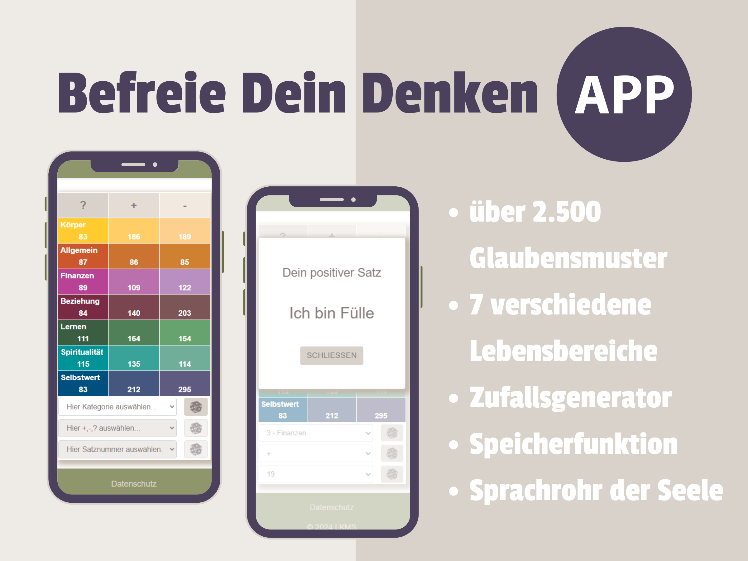Die Nutzung dieser magischen App ist sehr vielseitig! Die Techniken & Tools, die dazu entwickelt wurden, wachsen stetig! Die wohl häufigste & einfachste Art damit zu arbeiten ist der sogenannte KRAFTSATZ für den Tag! Denn dein Tag wird positiv verlaufen, wenn du deinen Fokus bereits am Morgen auf die Worte lenkst, die dich heute bestmöglich unterstützen können. Es gibt natürlich noch viele andere Möglichkeiten, diese App für dich zu nutzen. Lass dich von dieser Sammlung inspierieren und hole dir den täglichen Kraft-Impuls ins Haus.