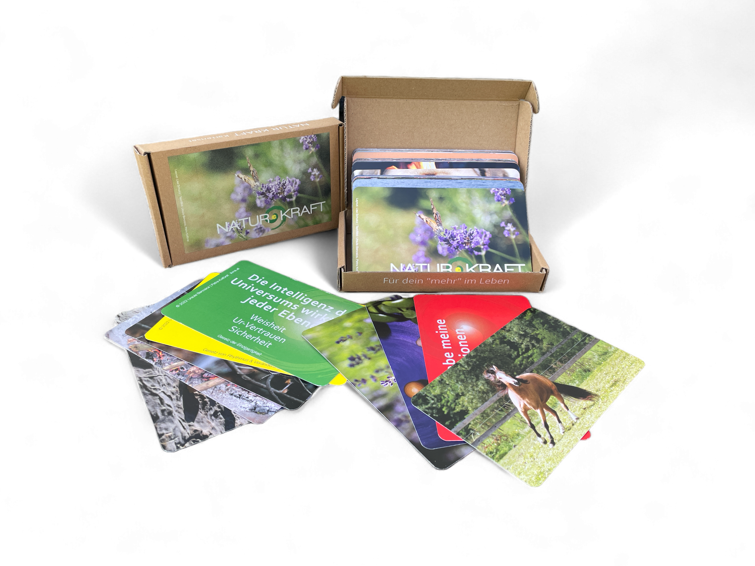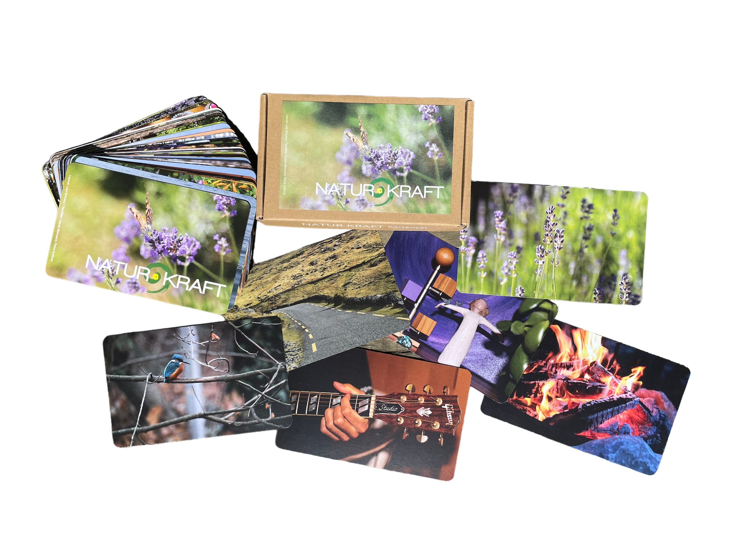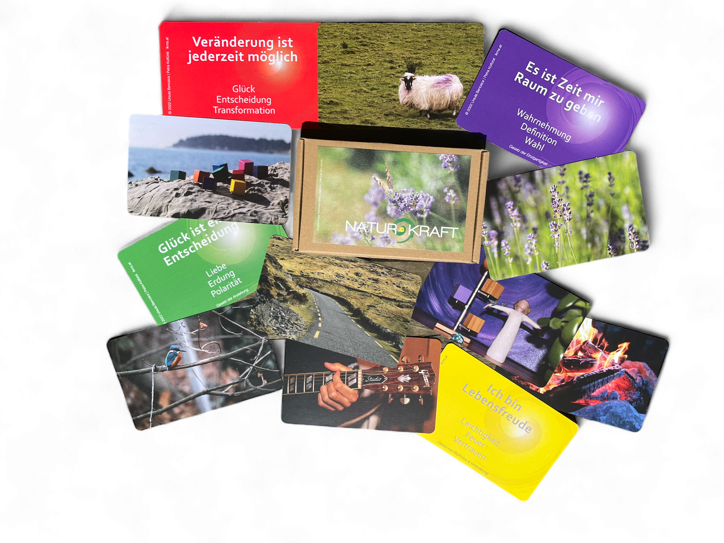 Diese Karten sind im Vertrauen entstanden, dass alles, was uns umgibt, eine spezielle Kraft ausstrahlt. Gehst du mit dieser Kraft in Kontakt, können unbewusst Informationen ausgetauscht werden, die im Moment der „Begegnung“ Impulse in dir auslösen. Experimentiere damit, spiel damit – lass es geschehen und begegne deinem persönlichen „Wunder“, auf einer Ebene jenseits des Verstandes. Jahrelange Experimente ließen diese Bilder entstehen. Beim Fotografieren war unsere Intension, die Kraft spezieller Momente sichtbar, spürbar und nutzbar zu machen – „den Moment einzufangen“, um mit diesen Bildern eine Kommunikation mit den Informationen hinter der sichtbaren Welt zu ermöglichen. Die Rückseite der Karten besteht aus jeweils einer positiven Affirmation und 3 Begriffen, die mit der Kraft des Bildes in Beziehung stehen – lass sie auf dich wirken und erlaube dir durch diese Worte und die Bilder eine Kommunikation mit dir ...